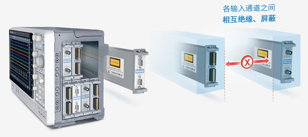 每臺示波記錄儀標配8個板卡卡槽,各輸入通道之間相互絕緣隔離,盡可能地確保在強干擾、多參考電壓等復雜環境下的精確測試。