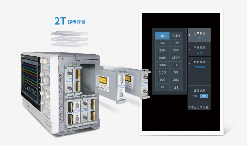 在記錄模式下,示波記錄儀可選配2T固態硬盤實時存儲,實時記錄采樣率可達1MSa/s,用作測量平臺時,耐久性測試的數據記錄時間可長達500天。